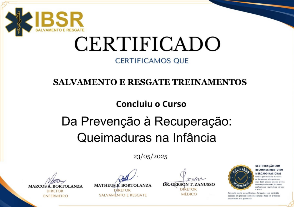 Sim! O conteúdo desta formação pode ser aplicado em diversos contextos — como escolas, creches, clínicas, instituições sociais e ambientes familiares — onde o preparo para lidar com queimaduras infantis é essencial.